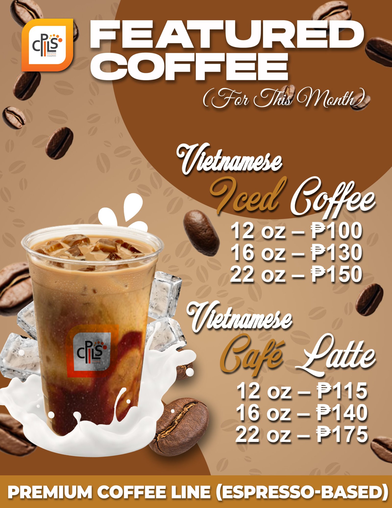 Featured Coffee for this month. Bold, rich, and perfectly sweet, our Vietnamese Iced Coffee is the perfect blend of strong brewed coffee and creamy condensed milk served over ice. A refreshing boost in every sip!